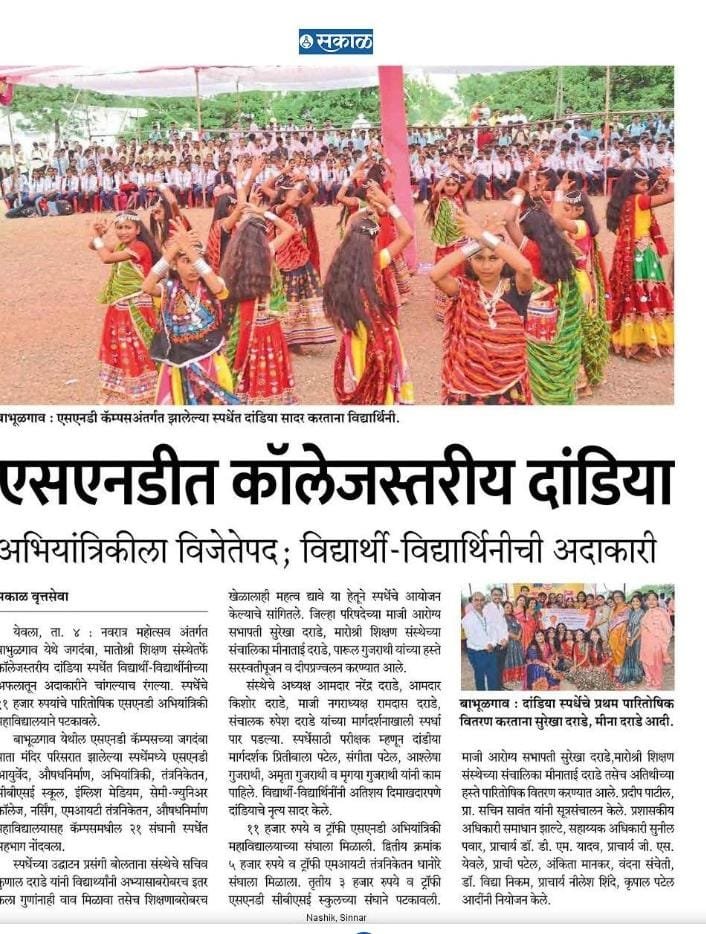 एसएनडीत कॉलेजस्थरीय दांडिया अभियांत्रिकी महाविद्यालयास विजेतेपद – सकाळ २०२२ Share Facebook Twitter Pinterest Linkedin