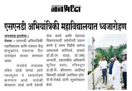 एस. एन. डी”  अभियांत्रिकी महाविद्यालय मध्ये ध्वजारोहण – आपले महानगर १८/०८/२०२२