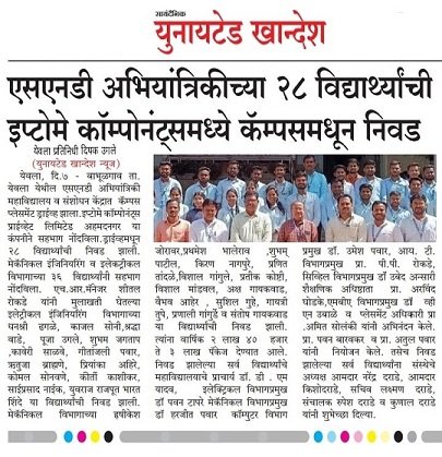 SND अभियांत्रिकी च्या २८ विद्याथ्याची इप्टोमे कॉम्पोनंटस मध्ये निवड